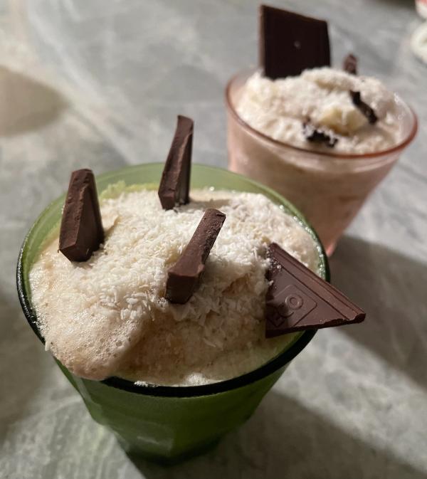 Mixer les bananes avec le jus de citron, la vanille, la cannelle, le miel et l'agar-agar
